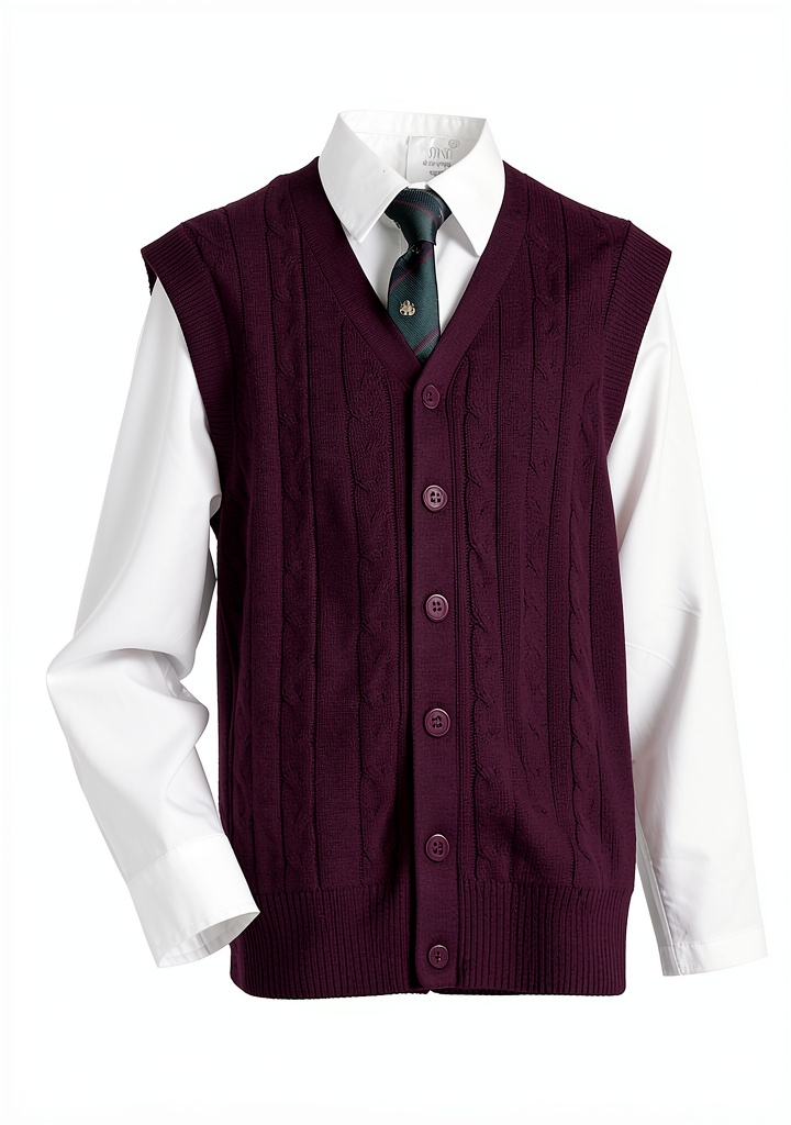 The Boboyoyo boys sweater vest is crafted from 100% premium cotton, offering exceptional softness and comfort for daily wear. Designed with a classic cable knit pattern and a practical v-neck, this sleeveless cardigan features a full button front for easy dressing. High-quality rib trim at the collar and hem ensures the vest maintains its shape and provides extra warmth. Available in multiple sizes (5-6 years to 10-12 years) and colors including Grey, Navy, Light Blue, and Burgundy, it suits various styles and occasions. Lightweight and breathable, it prevents pilling and static, making it a reliable choice for active children.